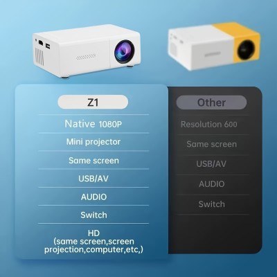 1080P portable mini projector - compatible with IOS, Android, Windows, etc. - including remote control, USB power supply